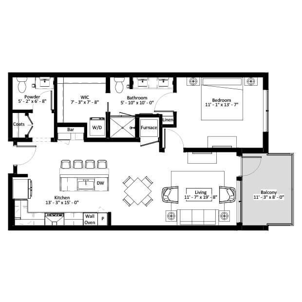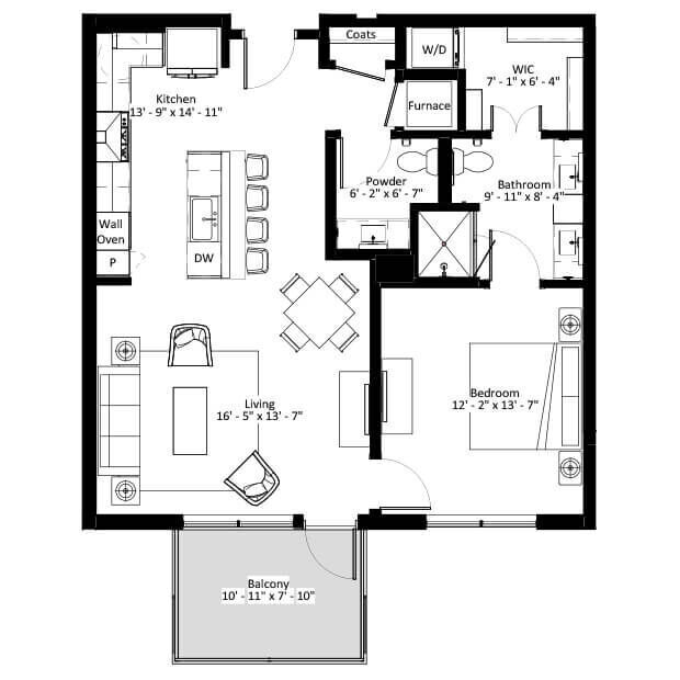 1 Dormitorio, 1 Baño, 755 pies²Galería del Modelo