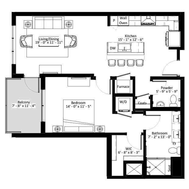 1 Dormitorio, 1 Baño, 762 pies²Galería del Modelo