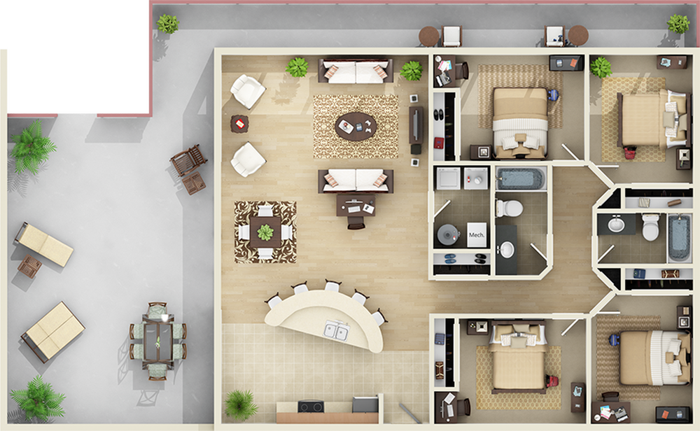 Modelo de apartamento: 3x2 - Super Balcony$1,7953 Dormitorios, 2 Baños, 1305 sq ftDisponible August 14, 2026![]()