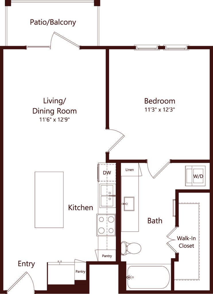 Estudio, 1 Baño, 588 pies²Disponible AhoraGalería del Modelo