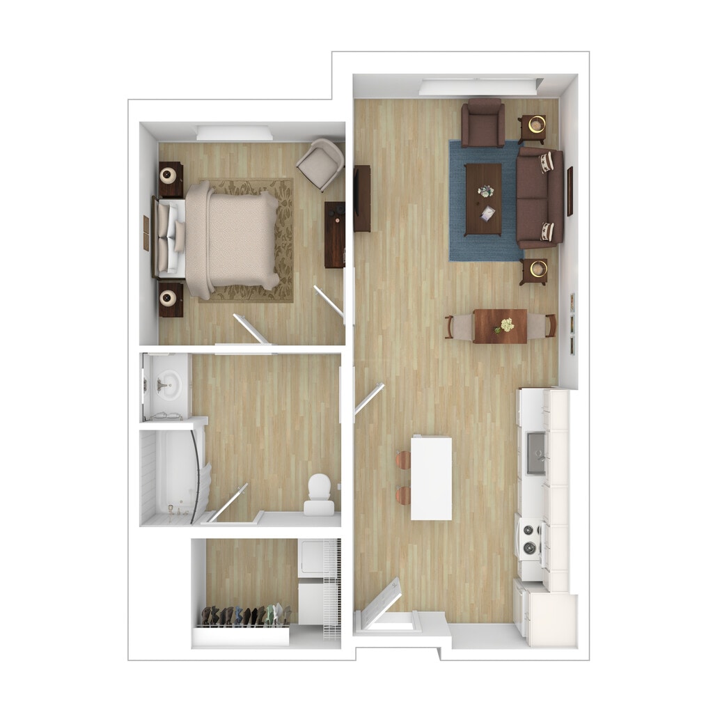 1 Dormitorio, 1 Baño, 524-634 pies²Disponible AhoraGalería del Modelo