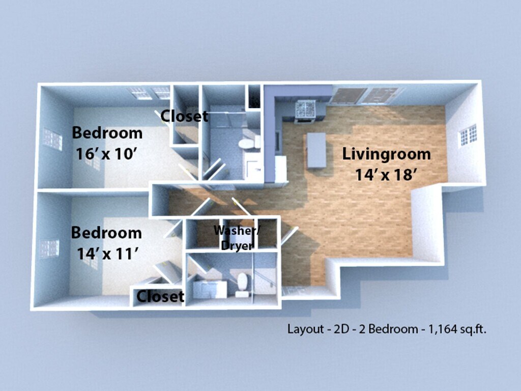 2 Dormitorios, 2 Baños, 1164 pies²Disponible AhoraEl más grandeEsta opción tiene las unidades más grandes para este modeloGalería del Modelo