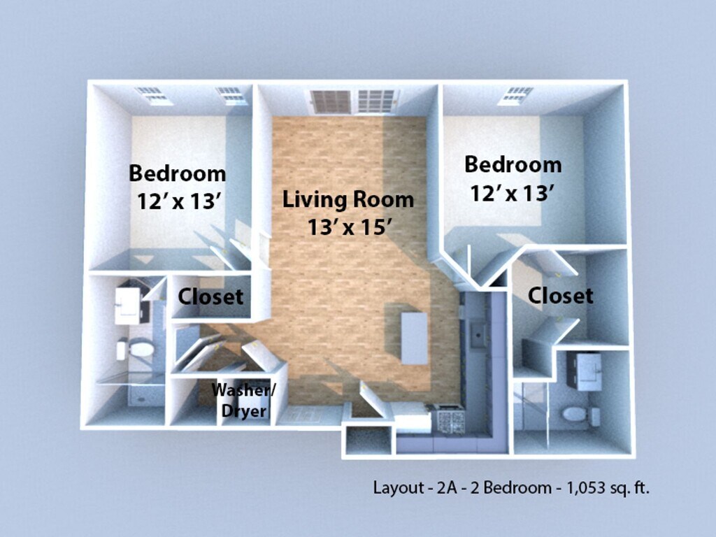 2 Dormitorios, 2 Baños, 1053 pies²Disponible AhoraGalería del Modelo
