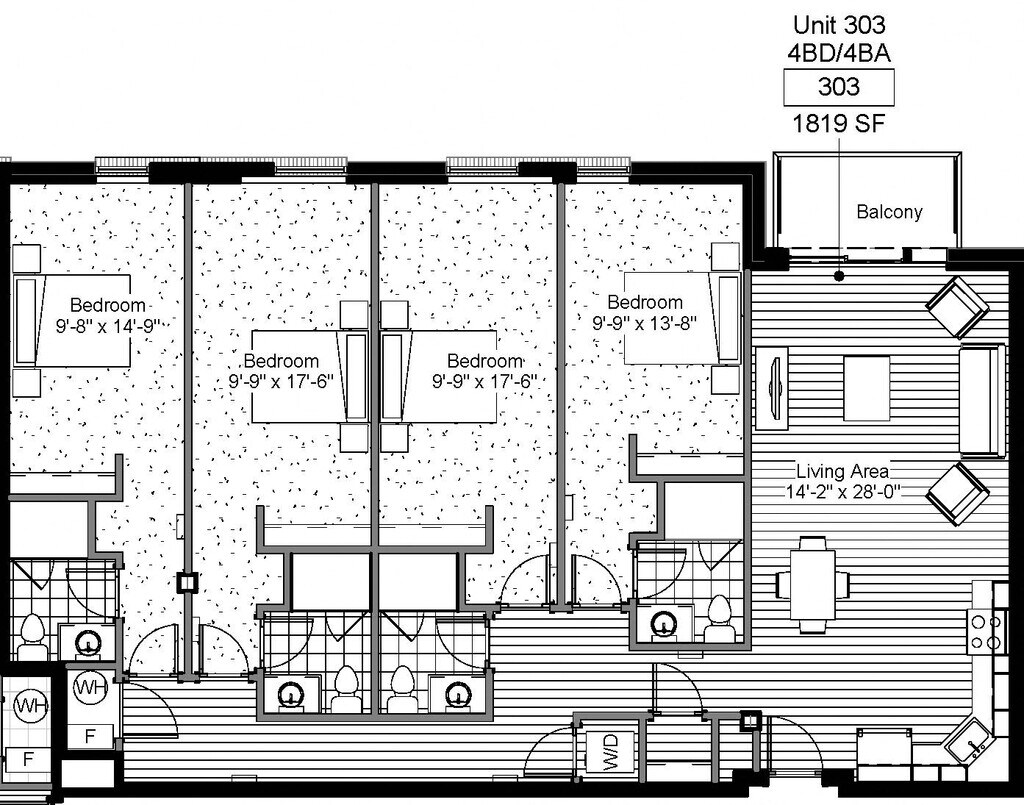 4 Bed 4 Bath - Plano 10 Unidad de apartamento: 203Modelo de apartamento: 4 Bed 4 Bath4 Dormitorios, 4 Baños, 1816 sq ftDisponible August 13, 2026Individual Bedroom - 4 Bed 4 Bath
