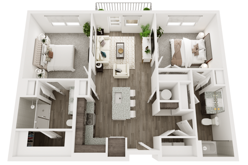 2 Dormitorios, 2 Baños, 967 pies²Disponible Oct 24Galería del Modelo