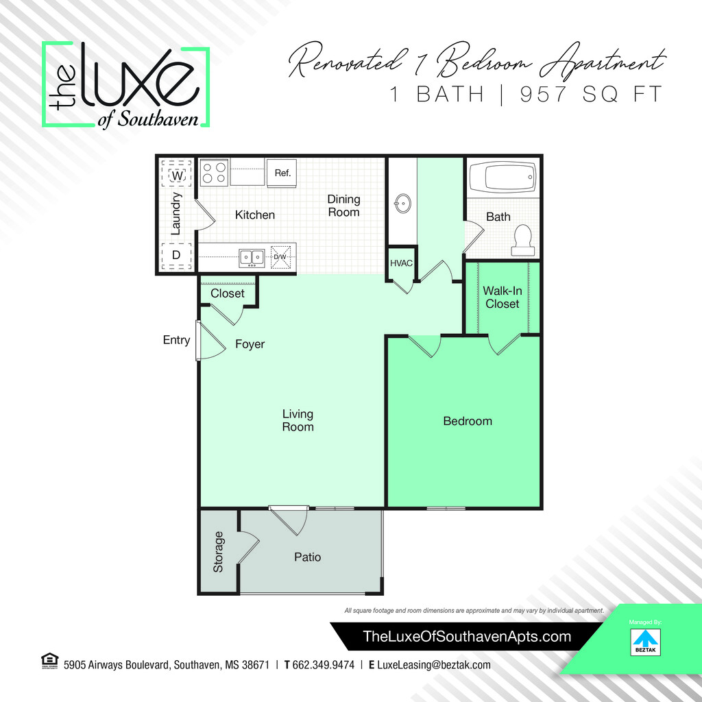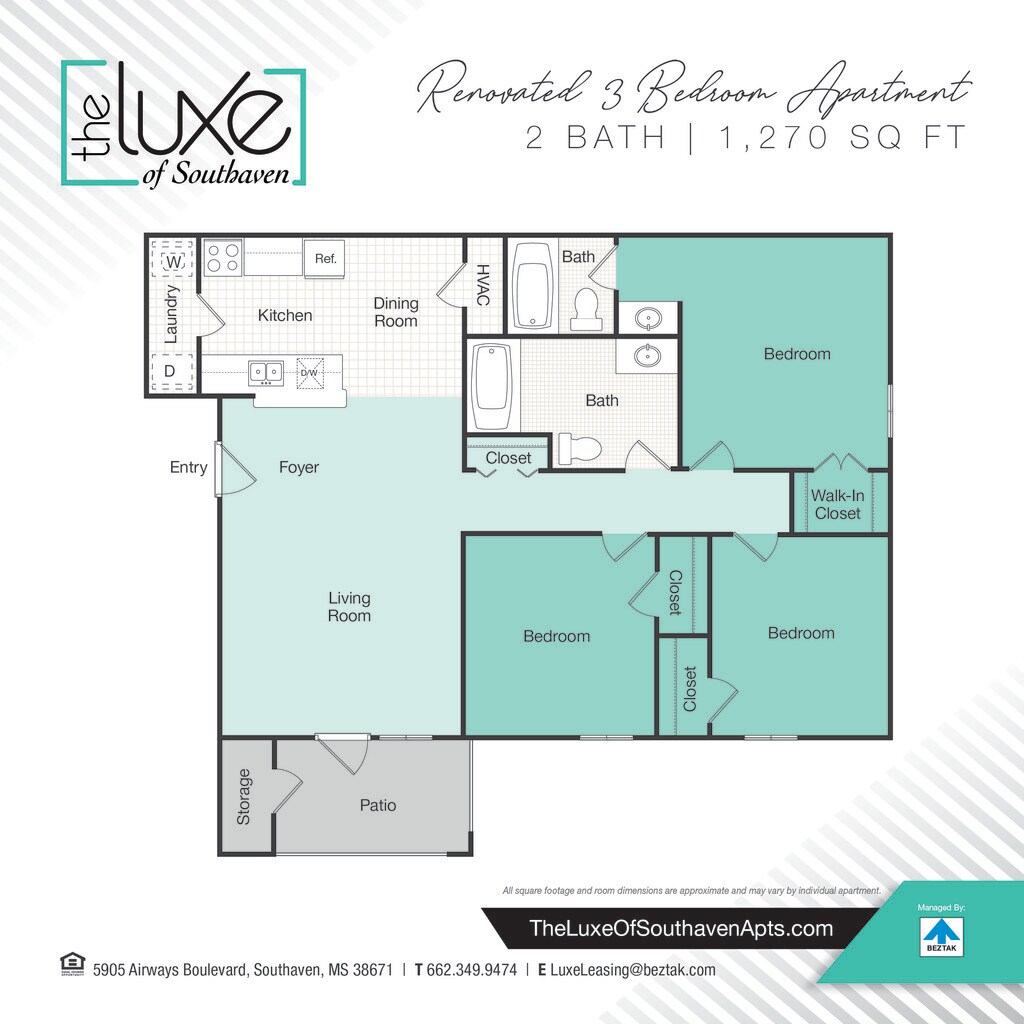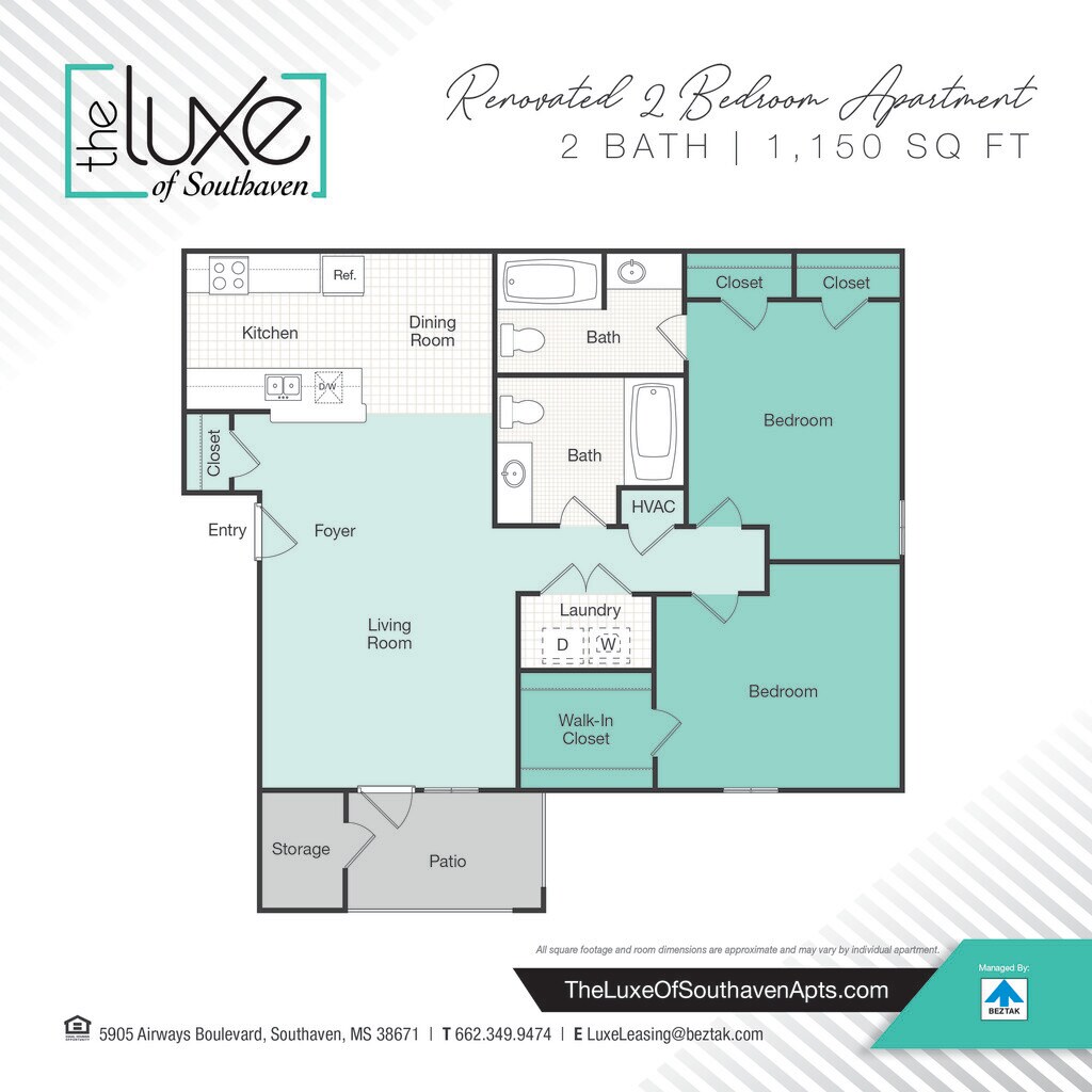 The Luxe of Southaven se encuentra en el código postal 38671 de Southaven, MS. Esta comunidad está gestionada profesionalmente por BEZTAK Properties