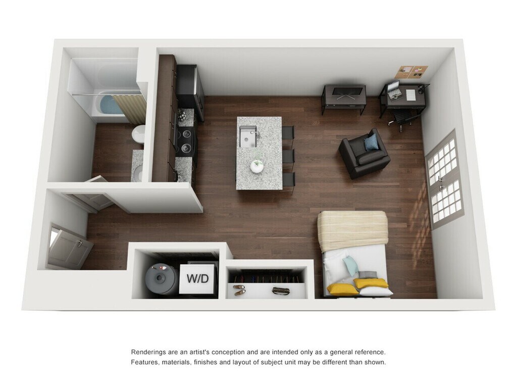Studio - Plano 1 Unidad de apartamento: PrivateModelo de apartamento: Studio$1,650Estudio, 1 Baño, 504 sq ftDisponible August 22, 2026Studio Premium