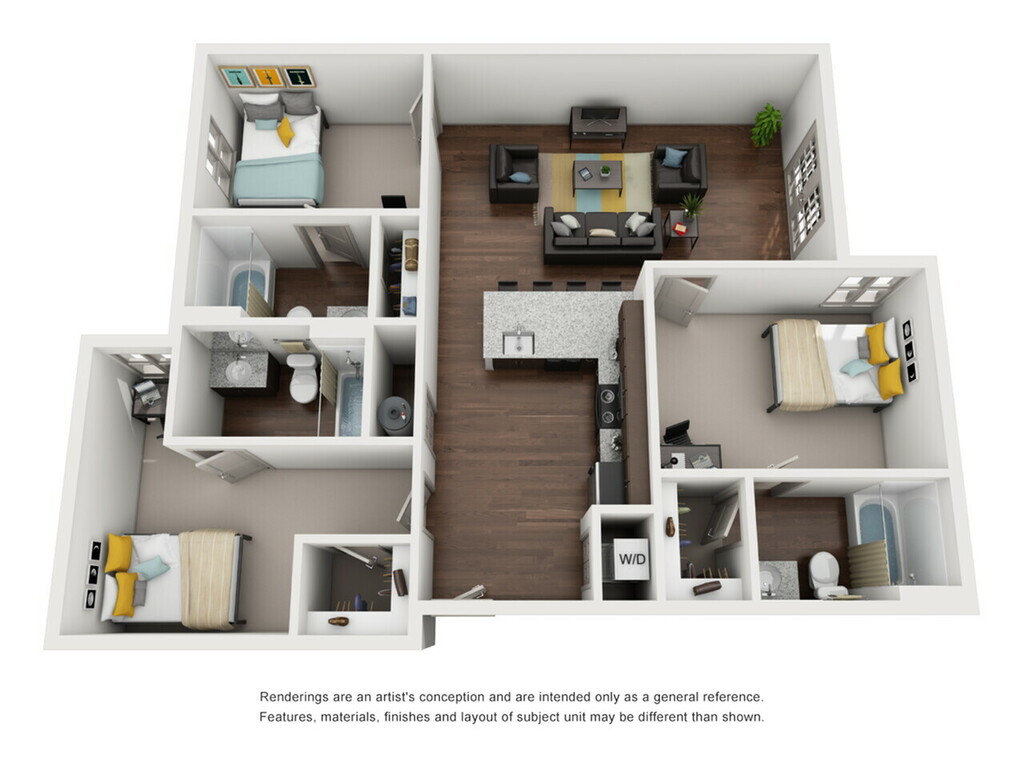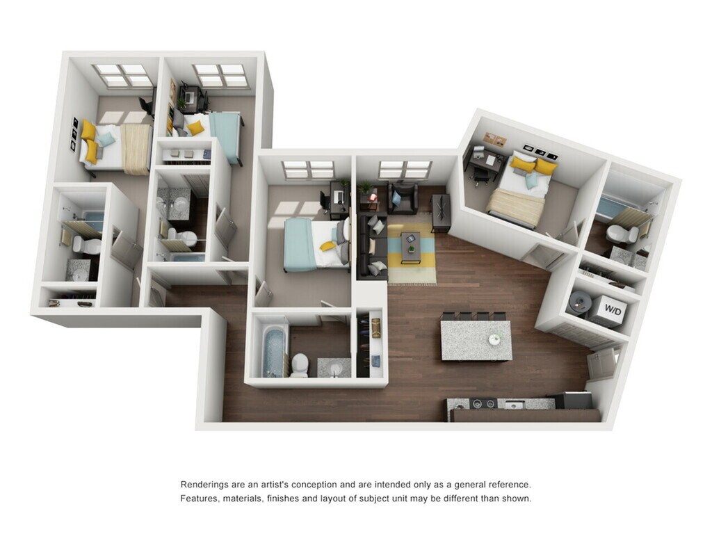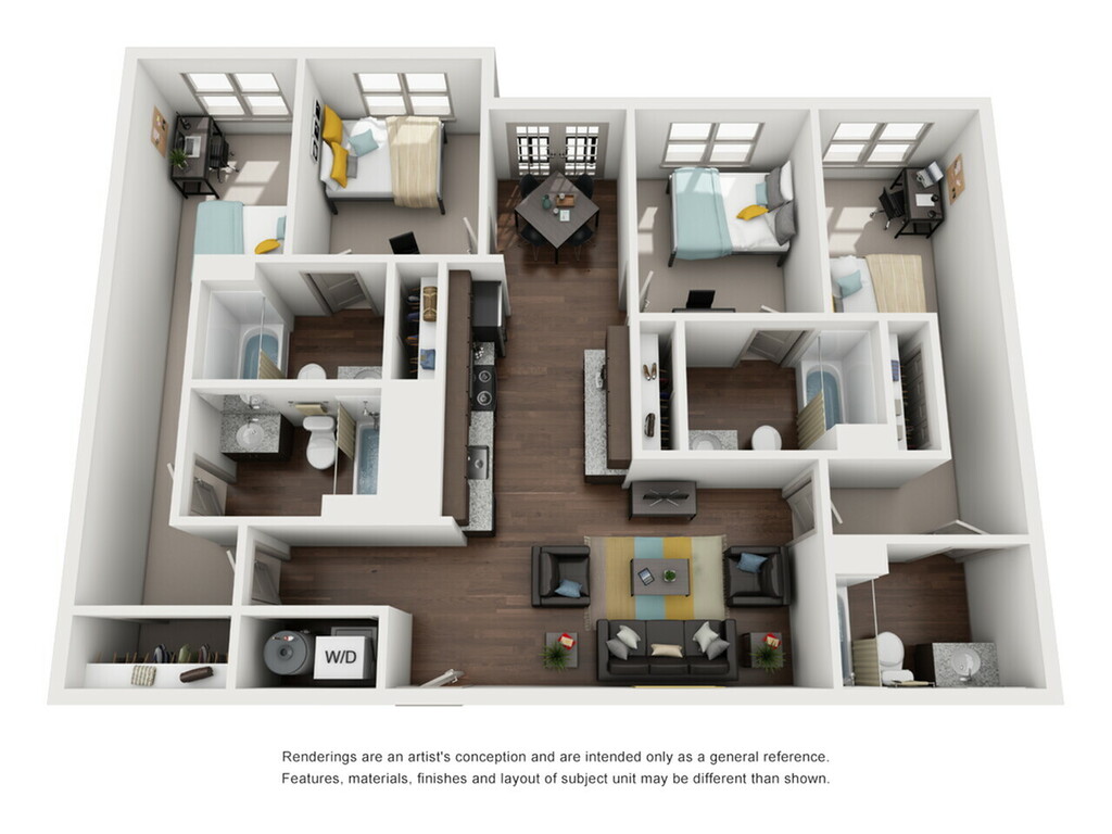 B1 - Plano 1 Unidad de apartamento: PrivateModelo de apartamento: B1$1,1302 Dormitorios, 2 Baños, 739 sq ftDisponible August 22, 20263 Dormitorios