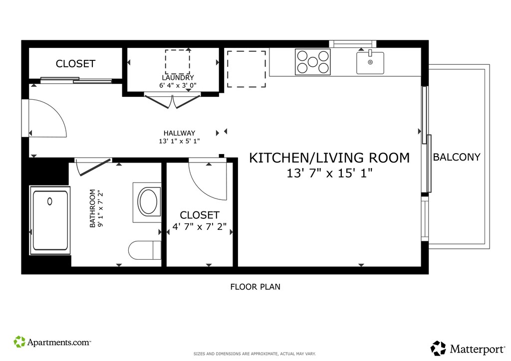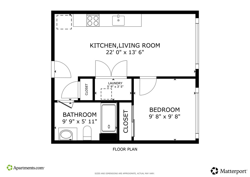 Estudio, 1 Baño, 360 pies²Disponible AhoraGalería del Modelo