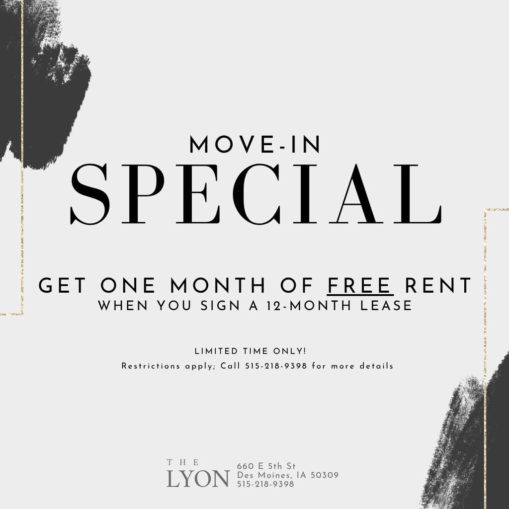 The Lyon se encuentra en el Barrio East Village y el código postal 50309 de Des Moines, IA. Esta comunidad está gestionada profesionalmente por Newbury Living