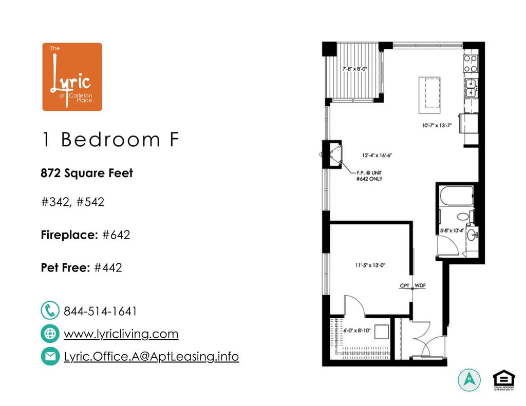 - Gas Fireplace (in Select Top-Floor Apartments)