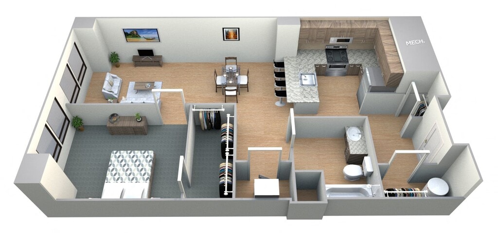 1 Dormitorio, 1 Baño, 757 pies²Disponible AhoraGalería del Modelo