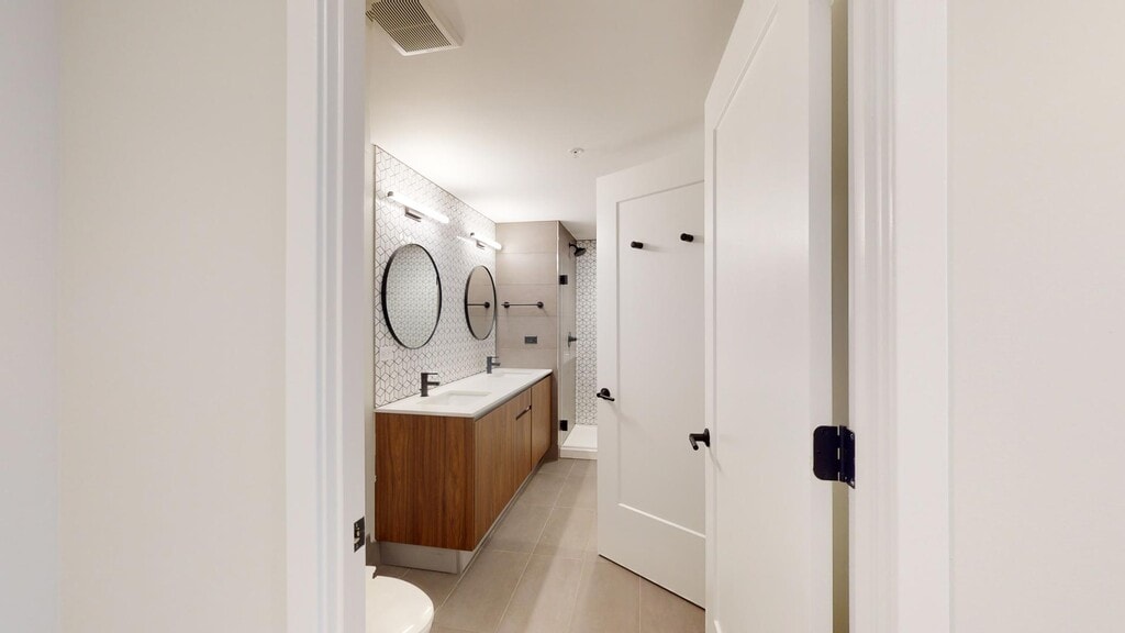 - Ducha con azulejos del suelo al techo