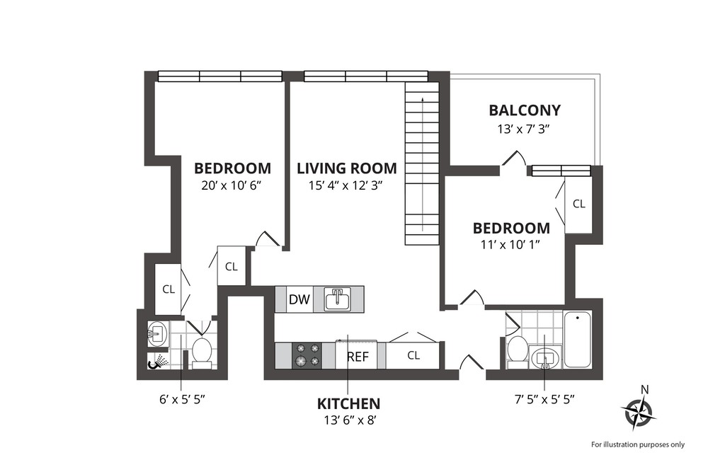 1 Bedroom/1 Bathroom - Plano 1 2 Dormitorios
