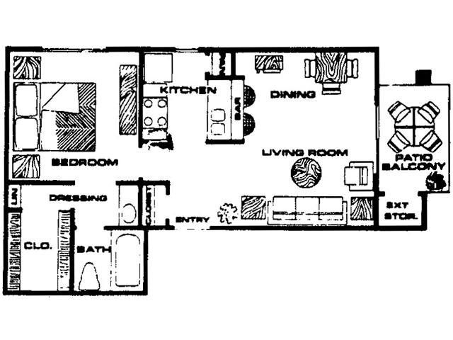 Modelo de apartamento: A2Desde $7451 Dormitorio, 1 Baño, 687 sq ftDisponible Ahora![]()
