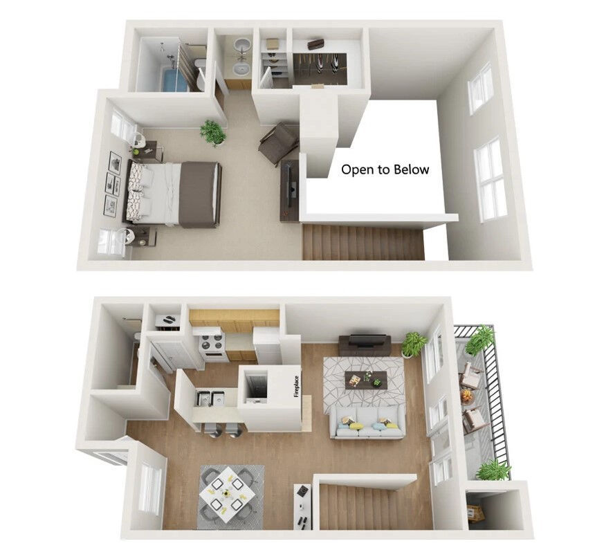 1 Dormitorio, 1 Baño, 800 pies²Disponible February 11, 2026Galería del Modelo