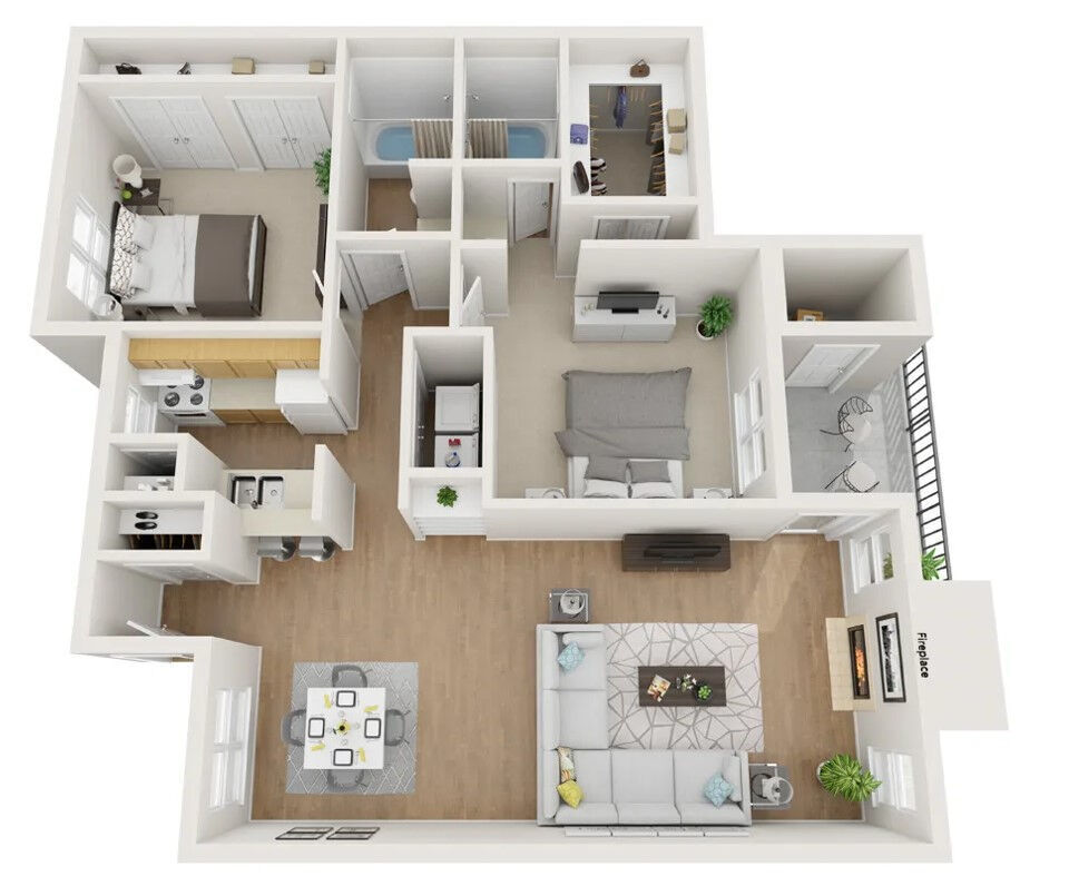 Modelo de apartamento: B2Desde $1,1552 Dormitorios, 2 Baños, 1076 sq ftDisponible Ahora![]()