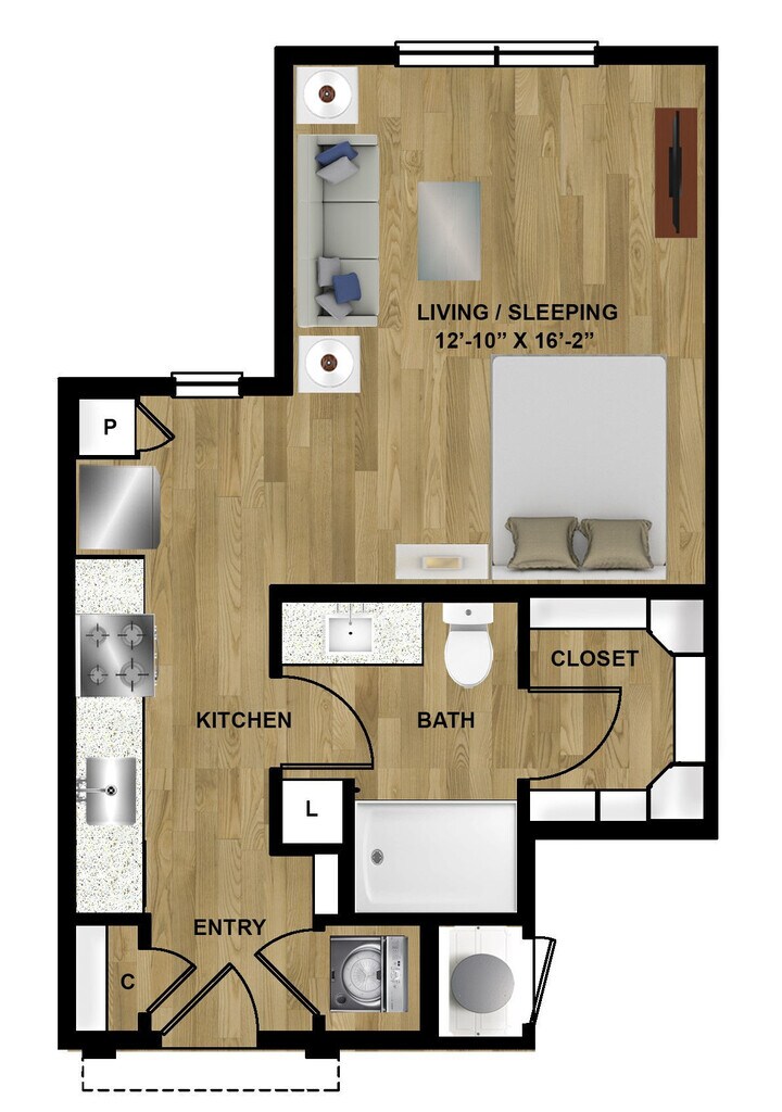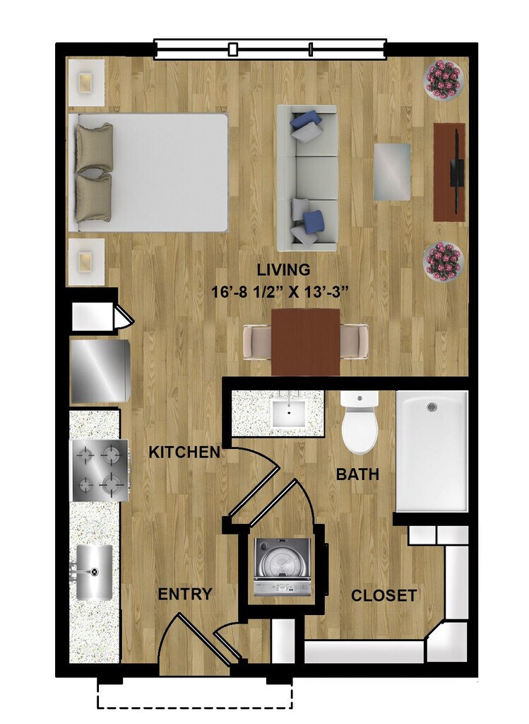 Estudio, 1 Baño, 572-578 pies²Disponible AhoraGalería del Modelo