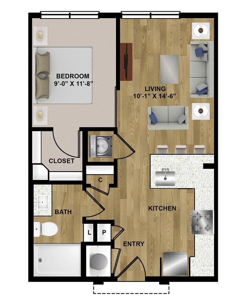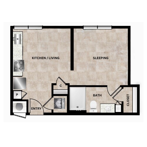 Modelo de apartamento: E3Estudio, 1 Baño, 526 sq ftDisponible Ahora![]()