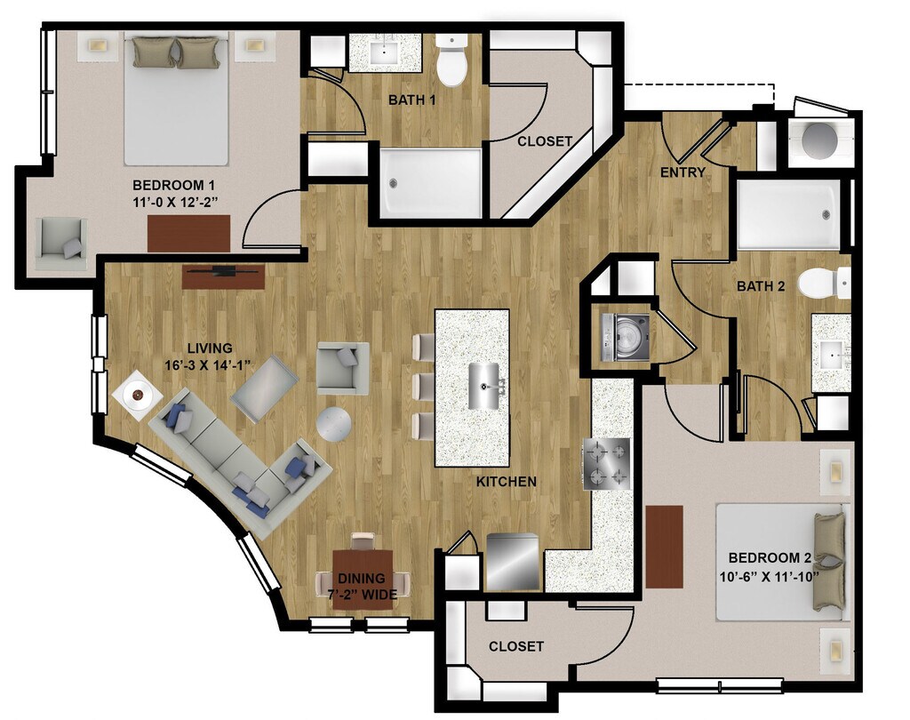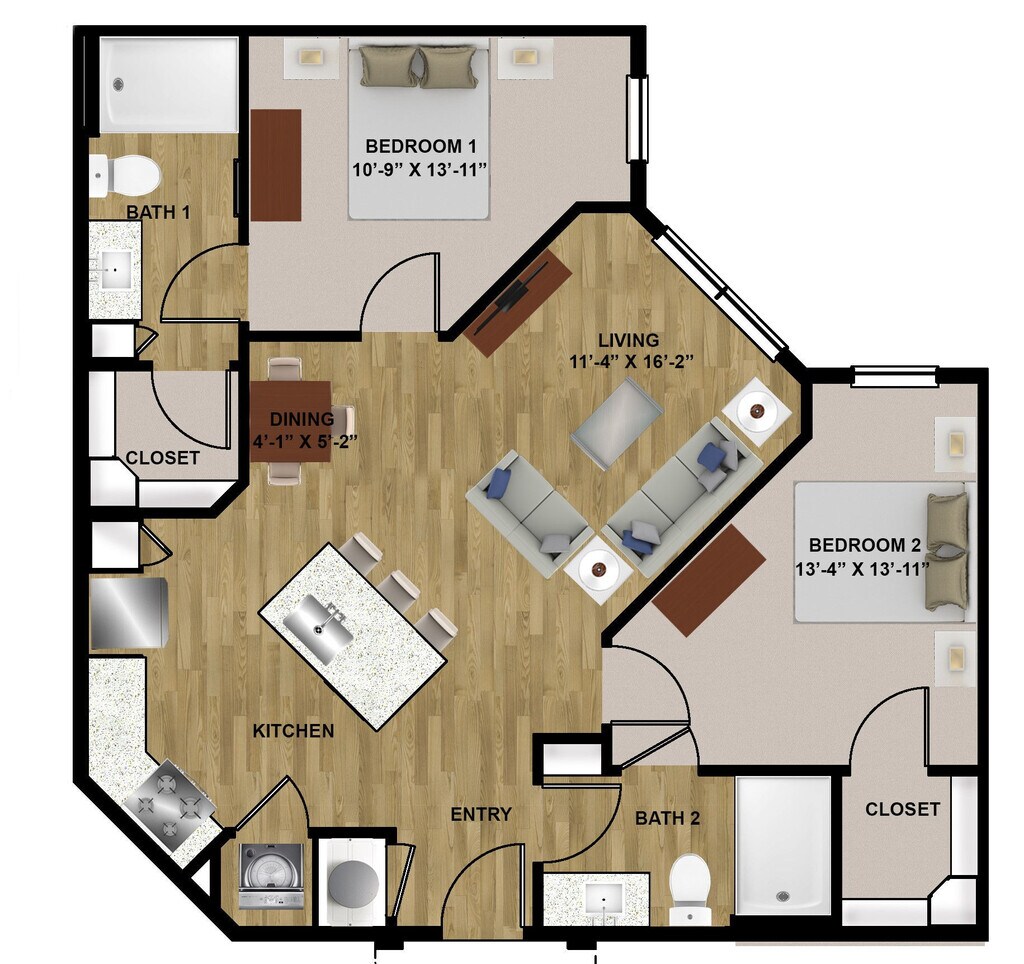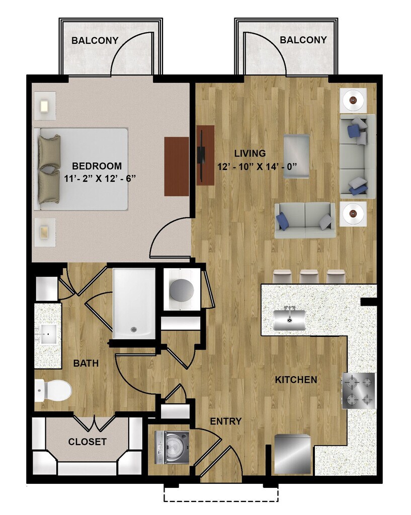 1 Dormitorio, 1 Baño, 712 pies²Disponible AhoraGalería del Modelo