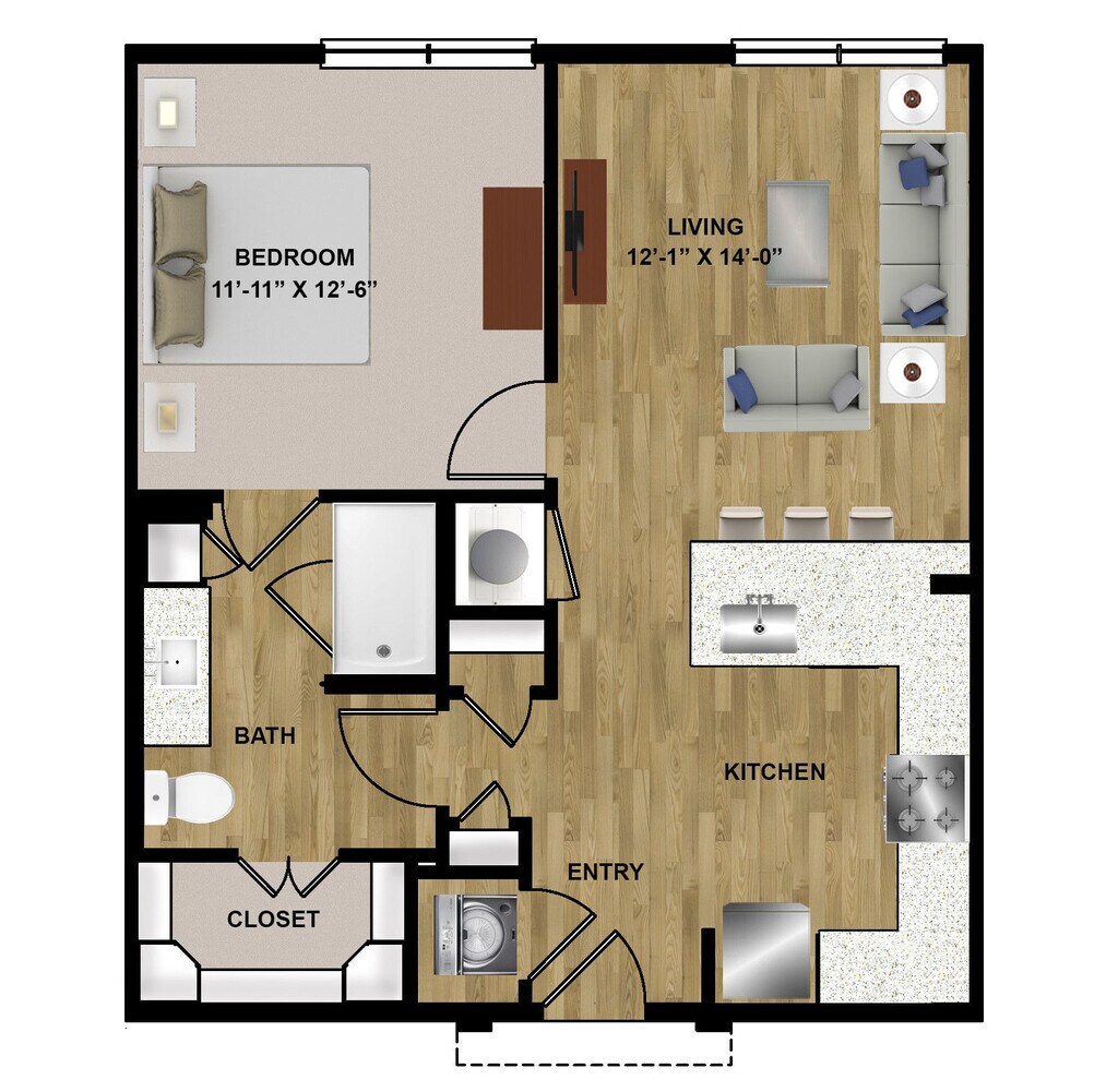 Modelo de apartamento: A11 Dormitorio, 1 Baño, 549 sq ftDisponible Ahora![]()