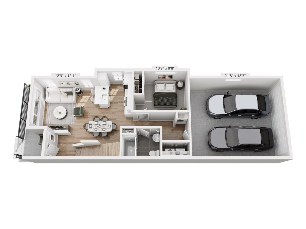 The Madison - 1B - Imagen 2 Los planos son representaciones artísticas. Todas las dimensiones son aproximadas. El producto y las especificaciones reales pueden variar en tamaño o detalle. No todas las características están disponibles en cada vivienda en alquiler. Por favor, consulta con un representante para obtener más detalles.