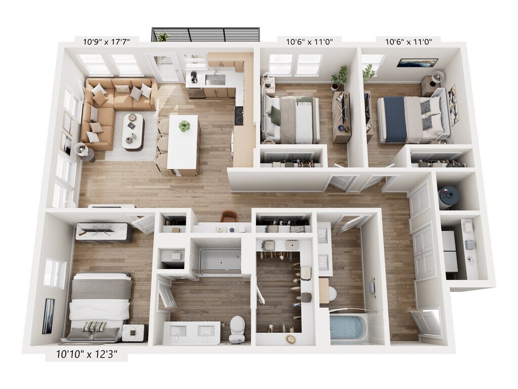 The Madison - 1A - Plano 3 Los planos son representaciones artísticas. Todas las dimensiones son aproximadas. El producto y las especificaciones reales pueden variar en tamaño o detalle. No todas las características están disponibles en cada vivienda en alquiler. Por favor, consulta con un representante para obtener más detalles.