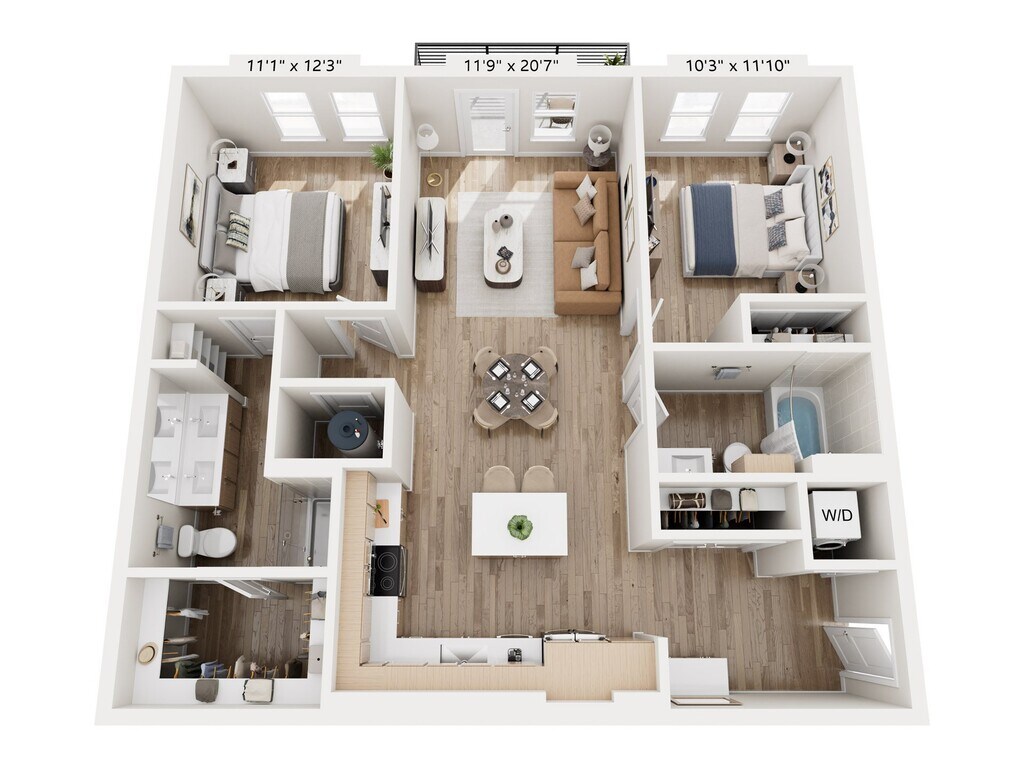 The Madison - 2C - Plano 3 Los planos son representaciones artísticas. Todas las dimensiones son aproximadas. El producto y las especificaciones reales pueden variar en tamaño o detalle. No todas las características están disponibles en cada vivienda en alquiler. Por favor, consulta con un representante para obtener más detalles.