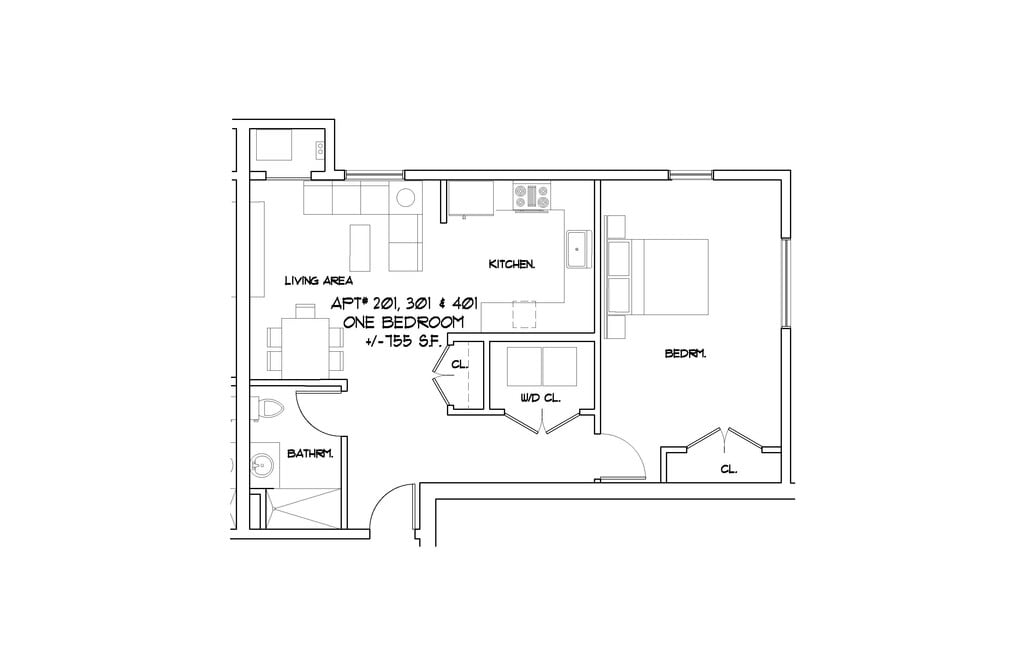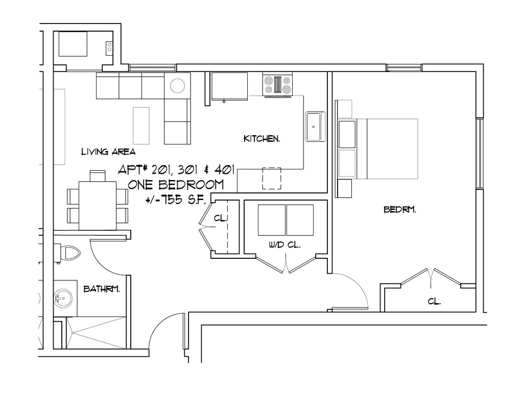 1 Dormitorio, 1 Baño, 755 pies²Disponible AhoraGalería del Modelo