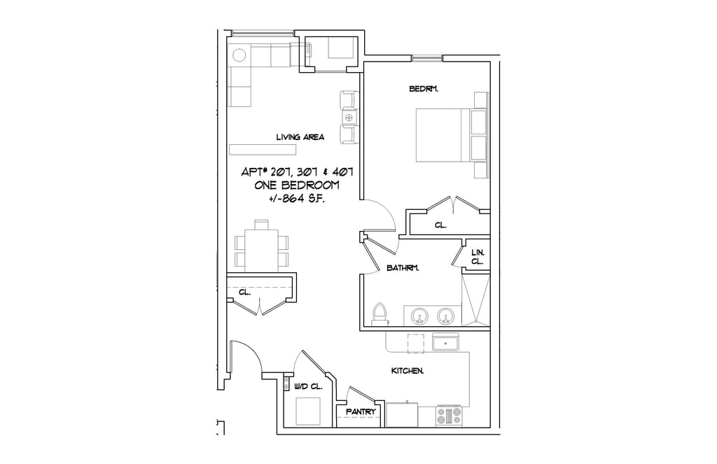 1 Dormitorio, 1 Baño, 864 pies²Disponible AhoraGalería del Modelo