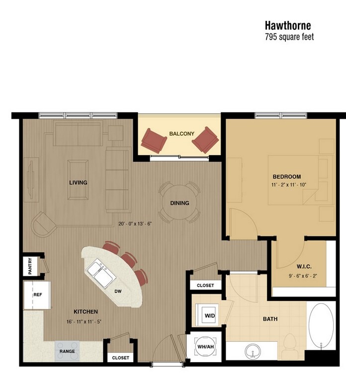 1 Dormitorio, 1 Baño, 781 pies²Disponible AhoraGalería del Modelo