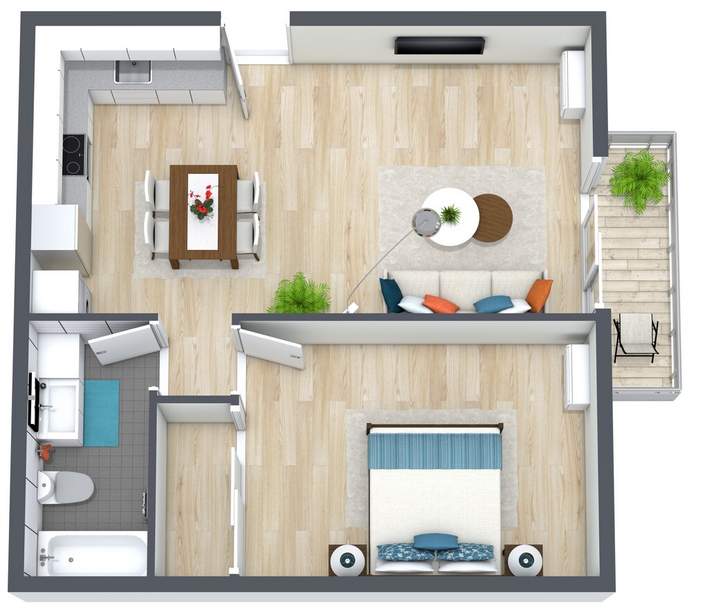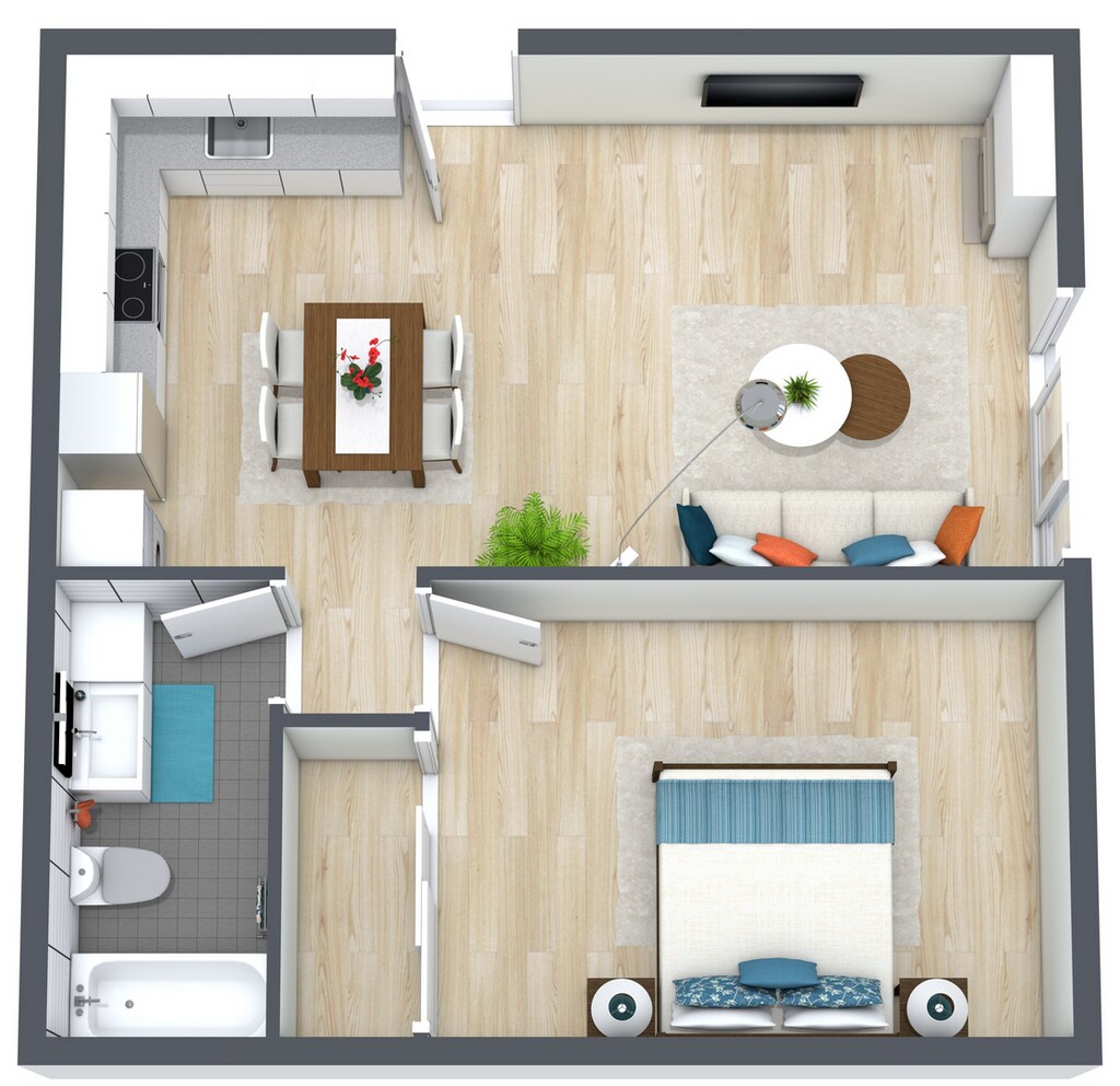 1 Dormitorio, 1 Baño, 576 pies²Disponible AhoraGalería del Modelo