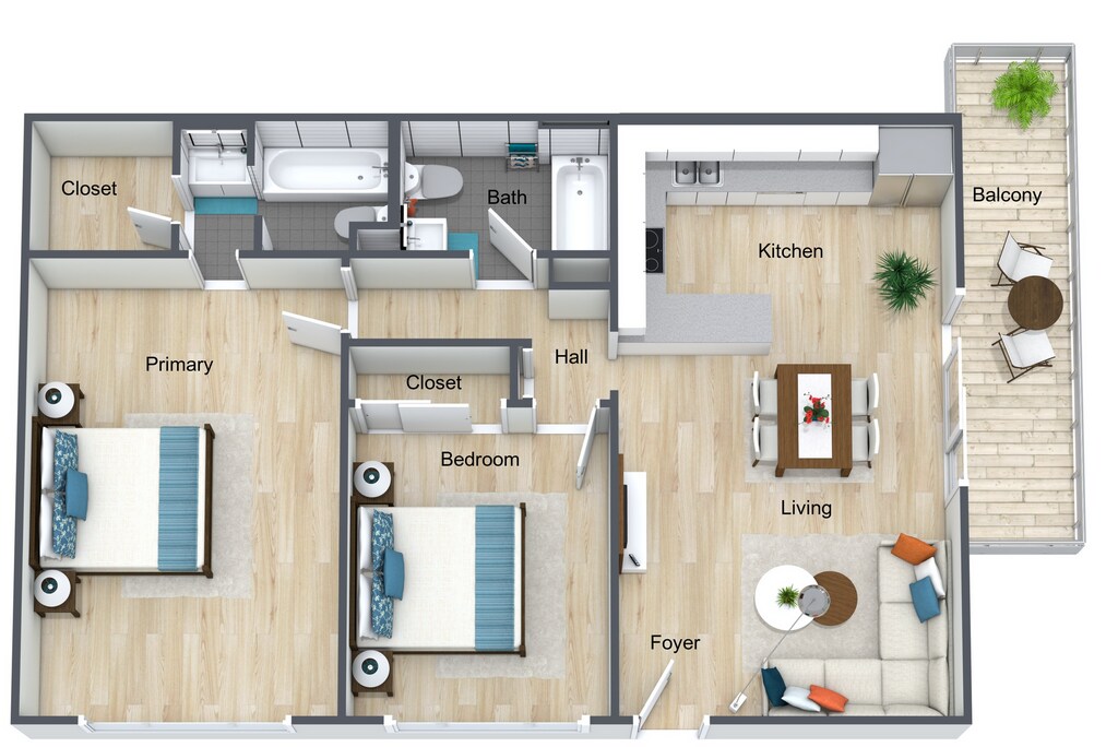 2 Dormitorios, 2 Baños, 864 pies²Disponible AhoraGalería del Modelo