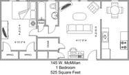 1 Dormitorio, 1 Baño, 525 pies²Disponible Aug 15, 2026Galería del Modelo