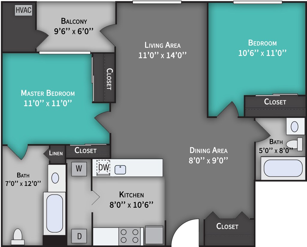 2 Dormitorios, 2 Baños, 1300 pies²Precio Mensual TotalDisponible AhoraEl más grandeEsta opción tiene las unidades más grandes para este modeloGalería del Modelo