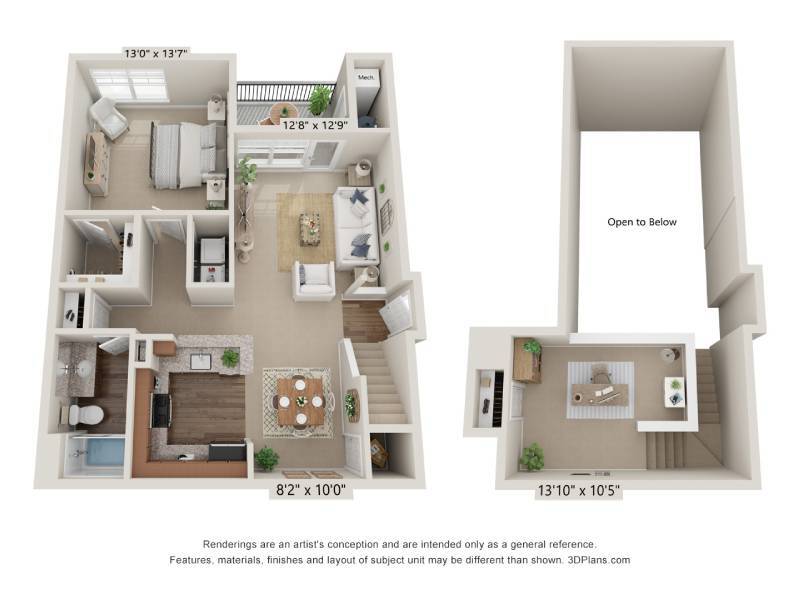 Modelo de apartamento: A4-LoftLlame para Precios1 Dormitorio, 1 Baño, 999 sq ftNo Disponible![]()