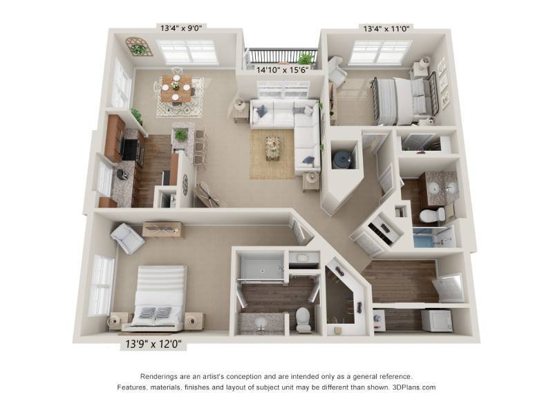 Modelo de apartamento: A3-DenLlame para Precios1 Dormitorio, 1 Baño, 977 sq ftNo Disponible![]()