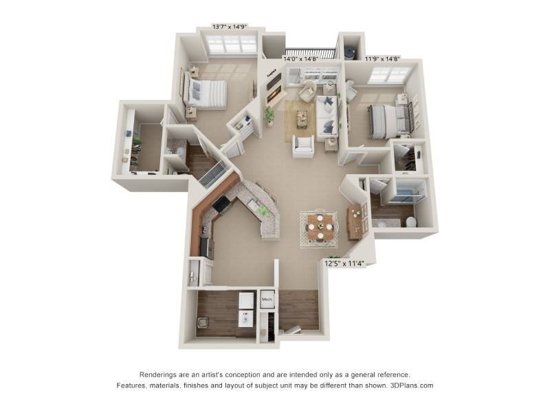 2 Dormitorios, 2 Baños, 1160 pies²Disponible AhoraGalería del Modelo
