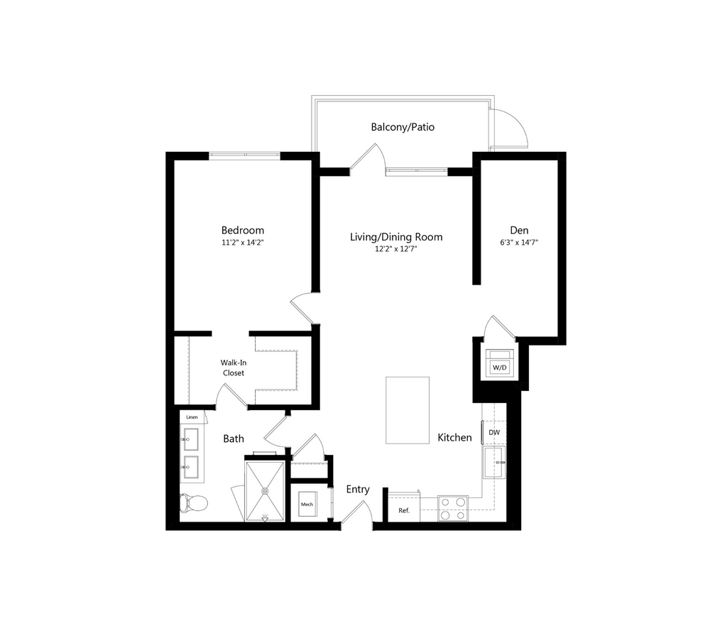 1 Dormitorio, 1 Baño, 619 pies²Disponible AhoraGalería del Modelo