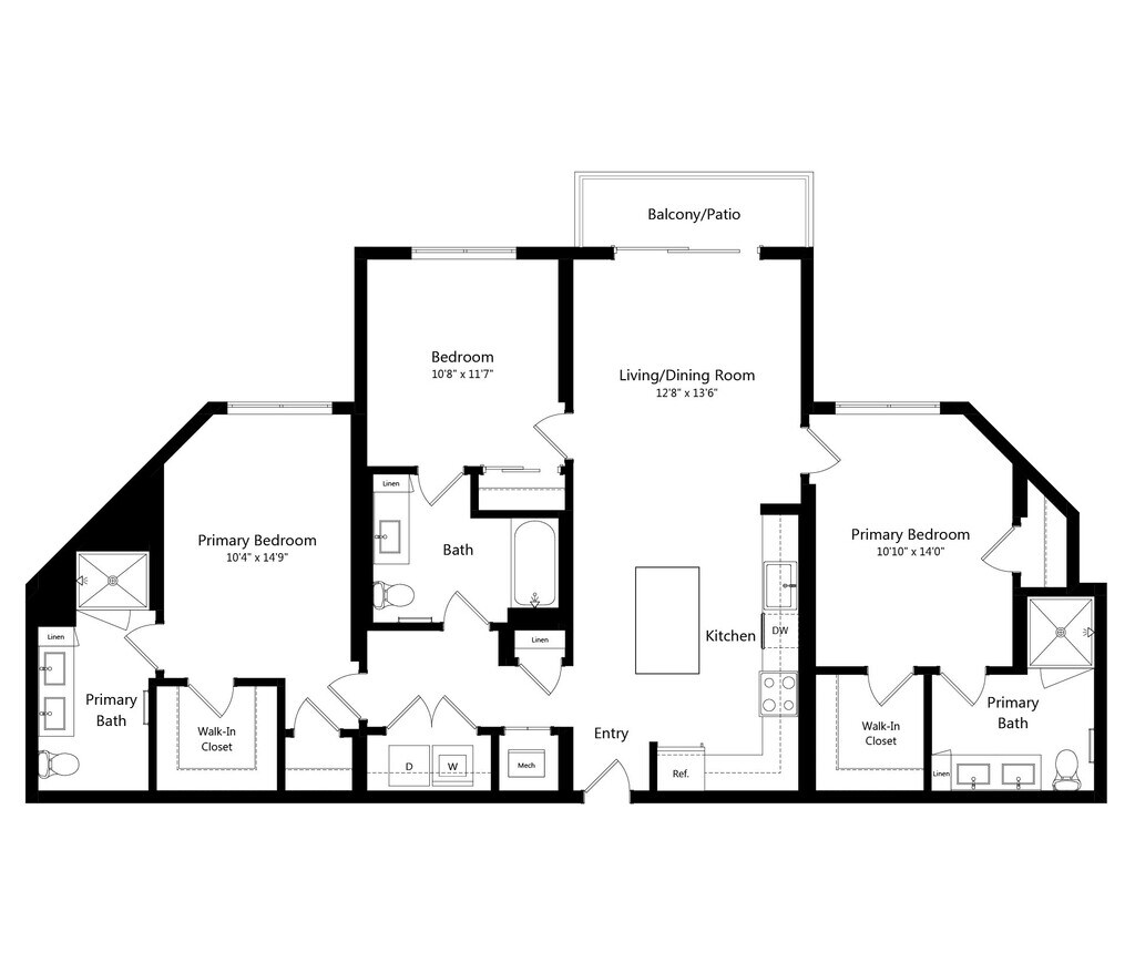 Modelo de apartamento: A2Llame para Precios1 Dormitorio, 1 Baño, 685 sq ftNo Disponible![]()