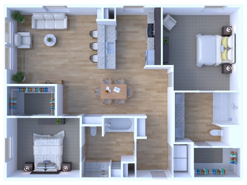 1 Dormitorio, 1 Baño, 750 pies²Disponible AhoraGalería del Modelo