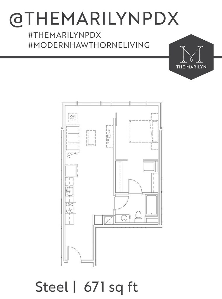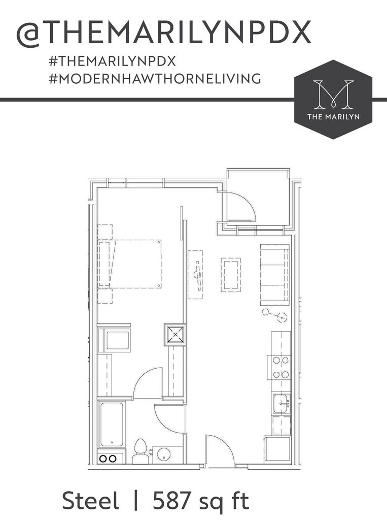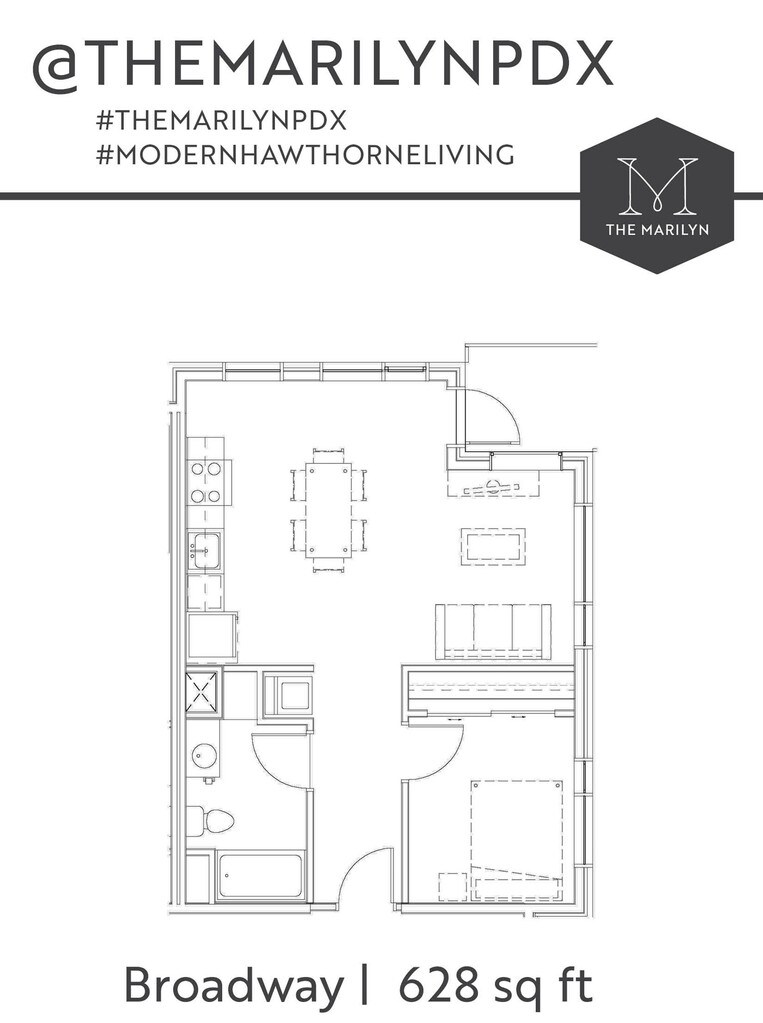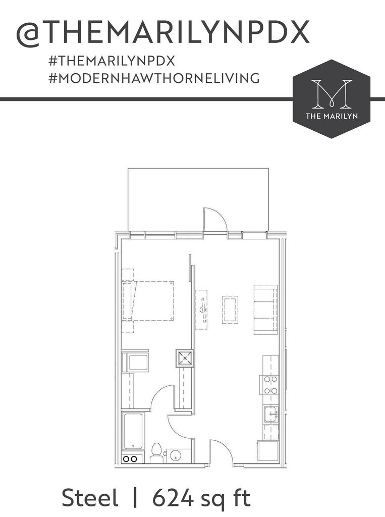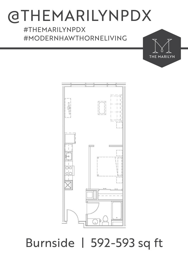 MORRISON - Plano 1 Unidad de apartamento: 306Modelo de apartamento: MORRISON$1,5431 Dormitorio, 1 Baño, 576 sq ftDisponible AhoraBURNSIDE