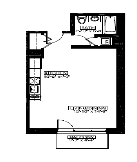 Studio, 1 bath