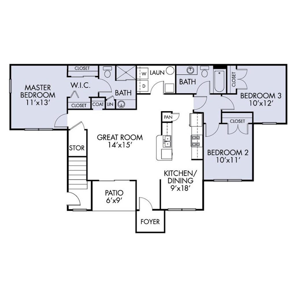 Modelo de apartamento: 3bed2bathDesde $1,6003 Dormitorios, 2 Baños, 1220-1275 sq ftDisponible November 26, 2025PlanosFotos![]()