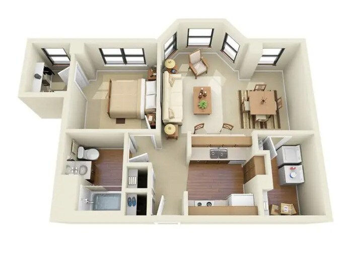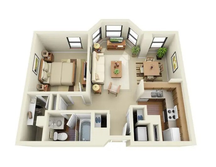 1 Dormitorio, 1 Baño, 609 pies²Disponible AhoraGalería del Modelo