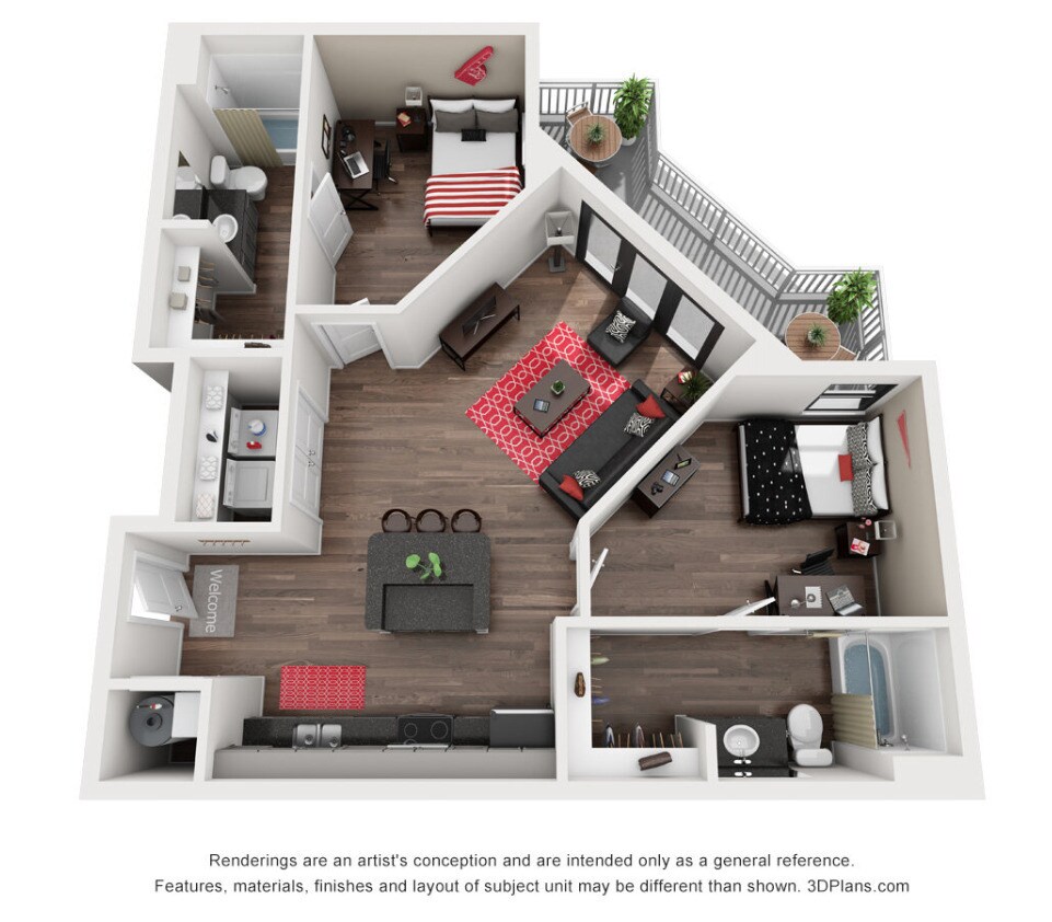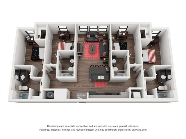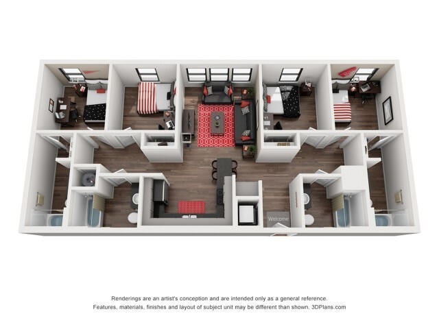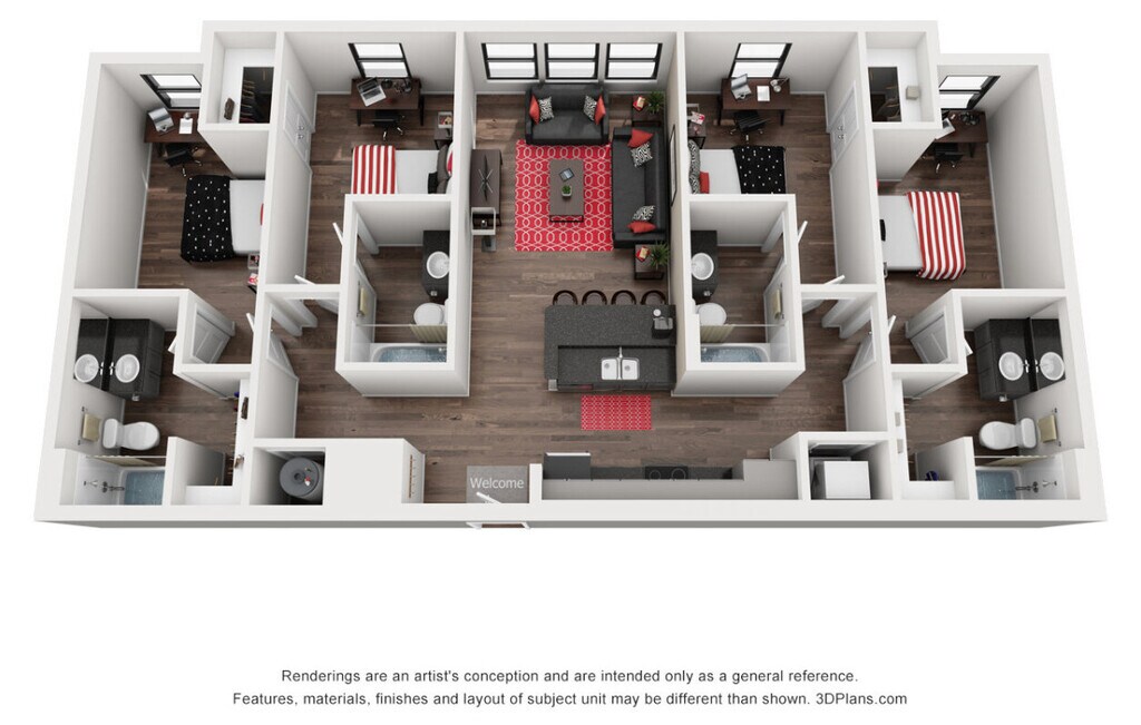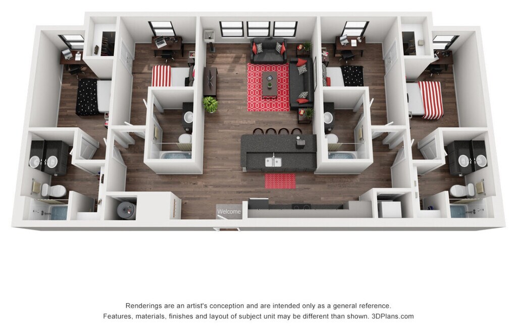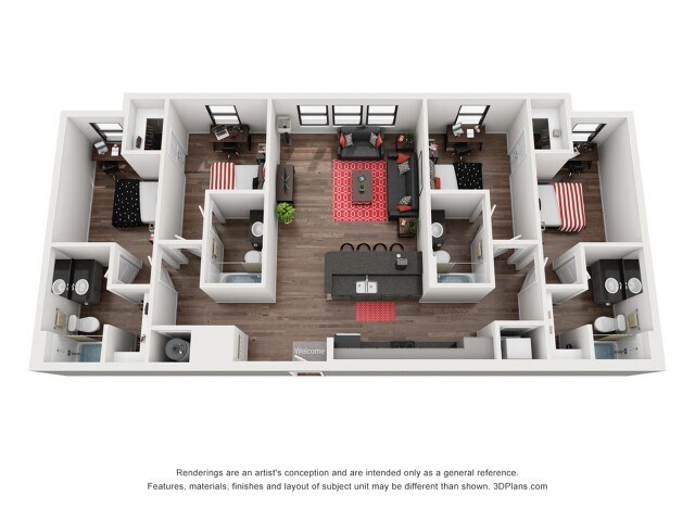 Modelo de apartamento: D14 Dormitorios, 4 Baños, 1273 sq ftNo Disponible![]()