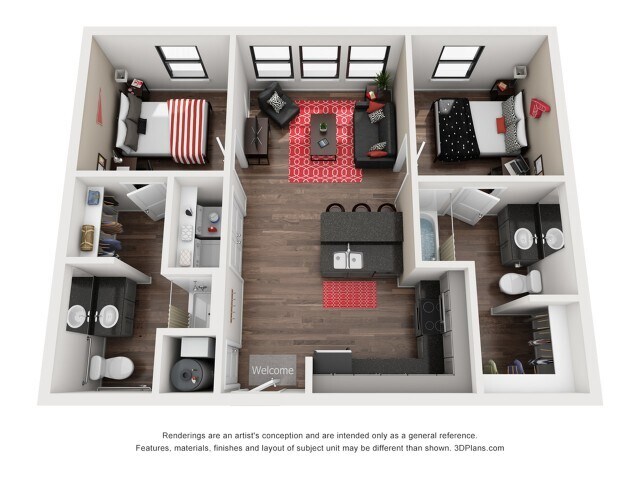 Modelo de apartamento: D34 Dormitorios, 4 Baños, 1461 sq ftNo Disponible![]()
