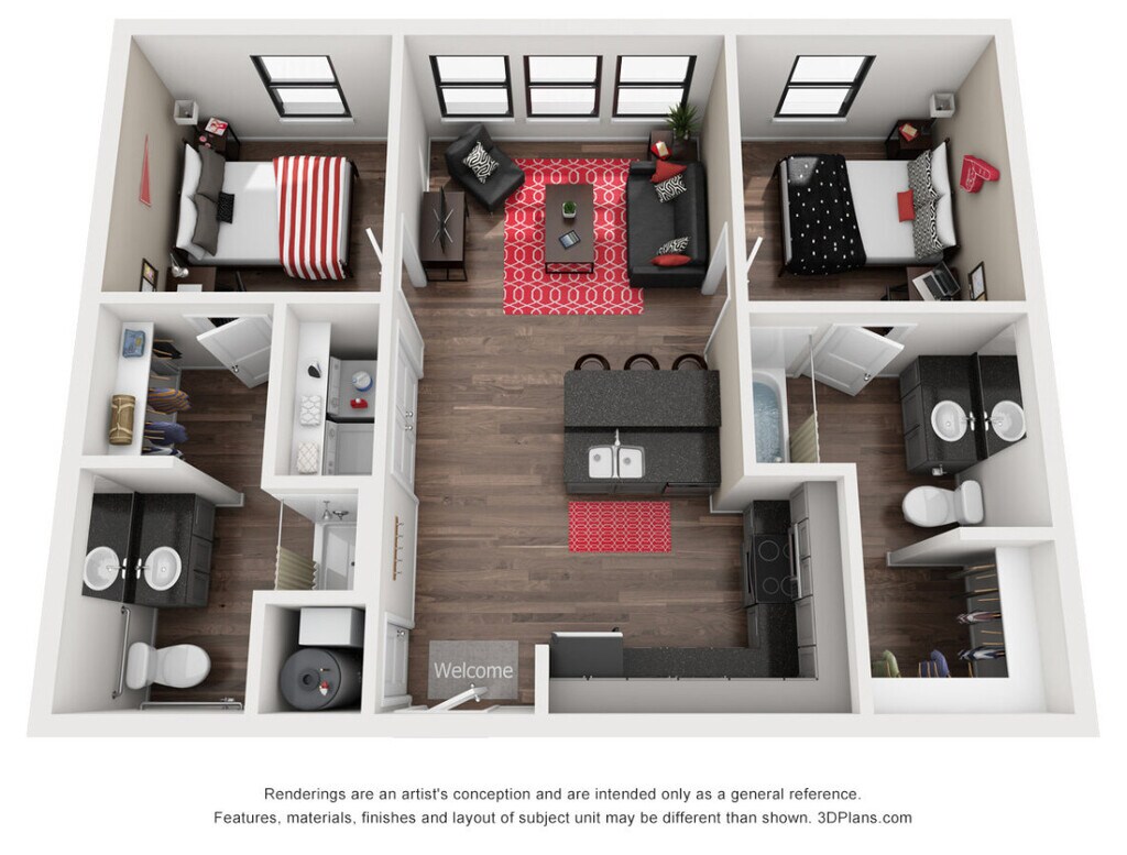 Modelo de apartamento: D24 Dormitorios, 4 Baños, 1355 sq ftNo Disponible![]()