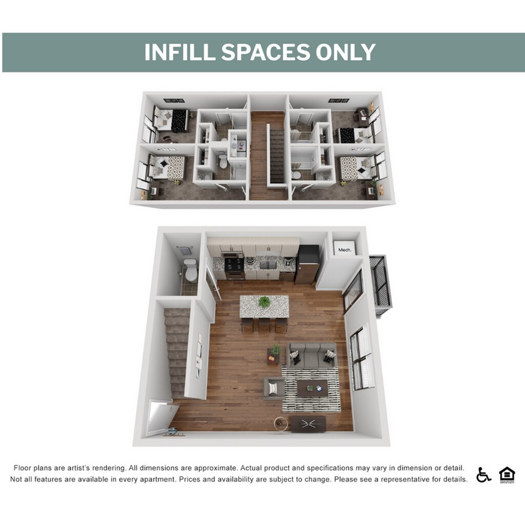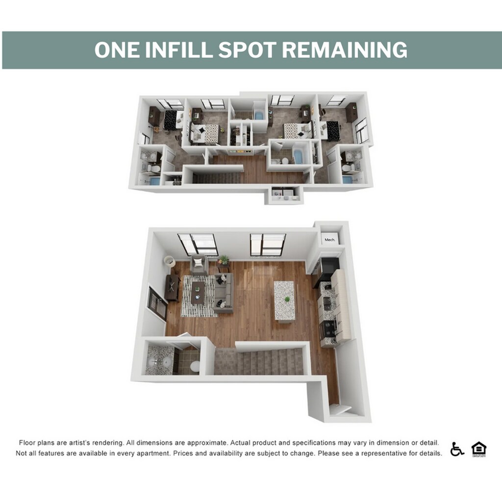 2DX2B - Plano 1 Los planos de la planta son una interpretación artística. Todas las dimensiones son aproximadas. Los tamaños o el detalle del producto real y sus especificaciones pueden variar. No todas las características están disponibles en todos los hogares para rentar. Los precios y la disponibilidad están sujetos a cambios. El alquiler que se muestra es mensual. Se pueden aplicar ciertos cargos, por ejemplo, entrega de paquetes, recolección de basura, agua, servicios, etc. Depositos varian. Consulta a un representante para conocer detalles.