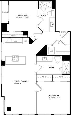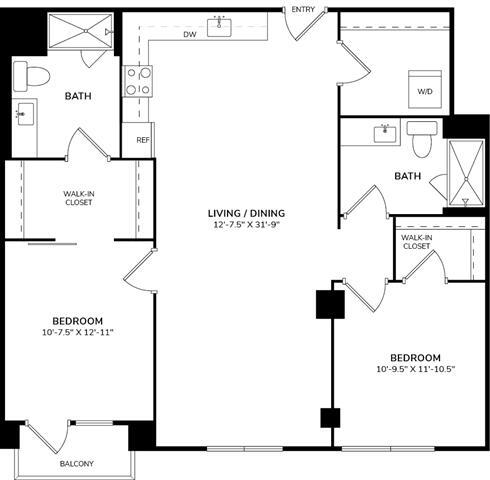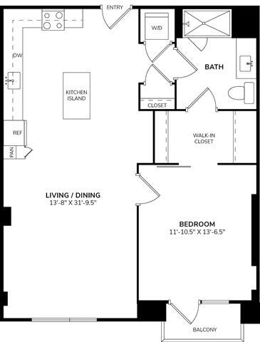Modelo de apartamento: A31 Dormitorio, 1 Baño, 711 sq ftDisponible January 10, 2026![]()